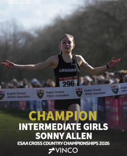The victory is so well deserved and has given her a long held ambition, to get an England vest! She will be representing England next weekend in Bangor, Wales at the SIAB schools international meeting.